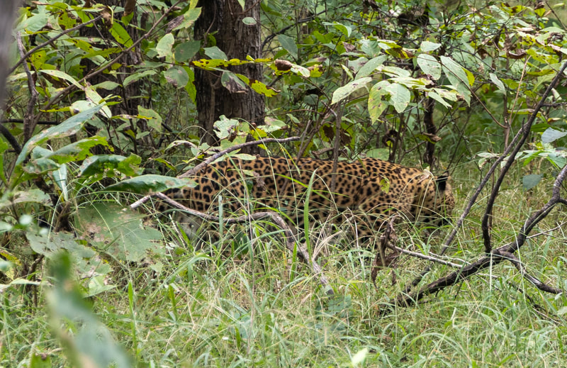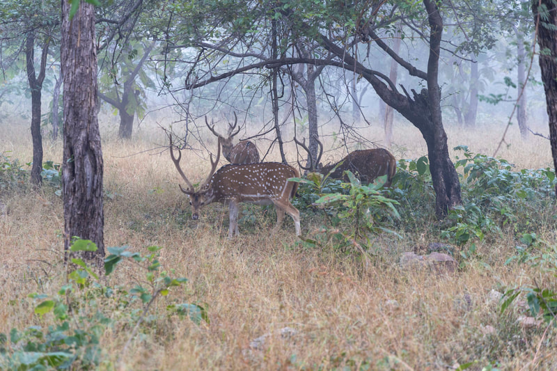 Depuis le Sarai, nous avons fait trois safaris dans le parc national de Panna, deux tôt le matin et un la nuit. Le but principal était d'apercevoir des tigres. Malheureusement, cela ne nous a pas été donné, ce qui est un peu frustrant, d'autant plus que d'autres clients ont pu observer une tigresse avec ses deux petits. Le fait que deux safaris aient eu lieu sous la pluie n'était pas idéal non plus. Nous avons tout de même découvert de nombreux animaux, les plus passionnants étant un léopard (que l'on voit apparemment très rarement) et un chacal (que nous avons pu observer de très près). Il y avait en tout cas suffisamment d'animaux pour que Yashi puisse prendre de superbes photos. Nous avons passé une journée à Kajuraho, la ville voisine. Yashi en parlera dans le prochain article.